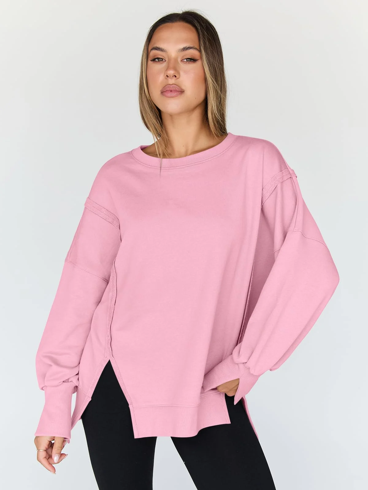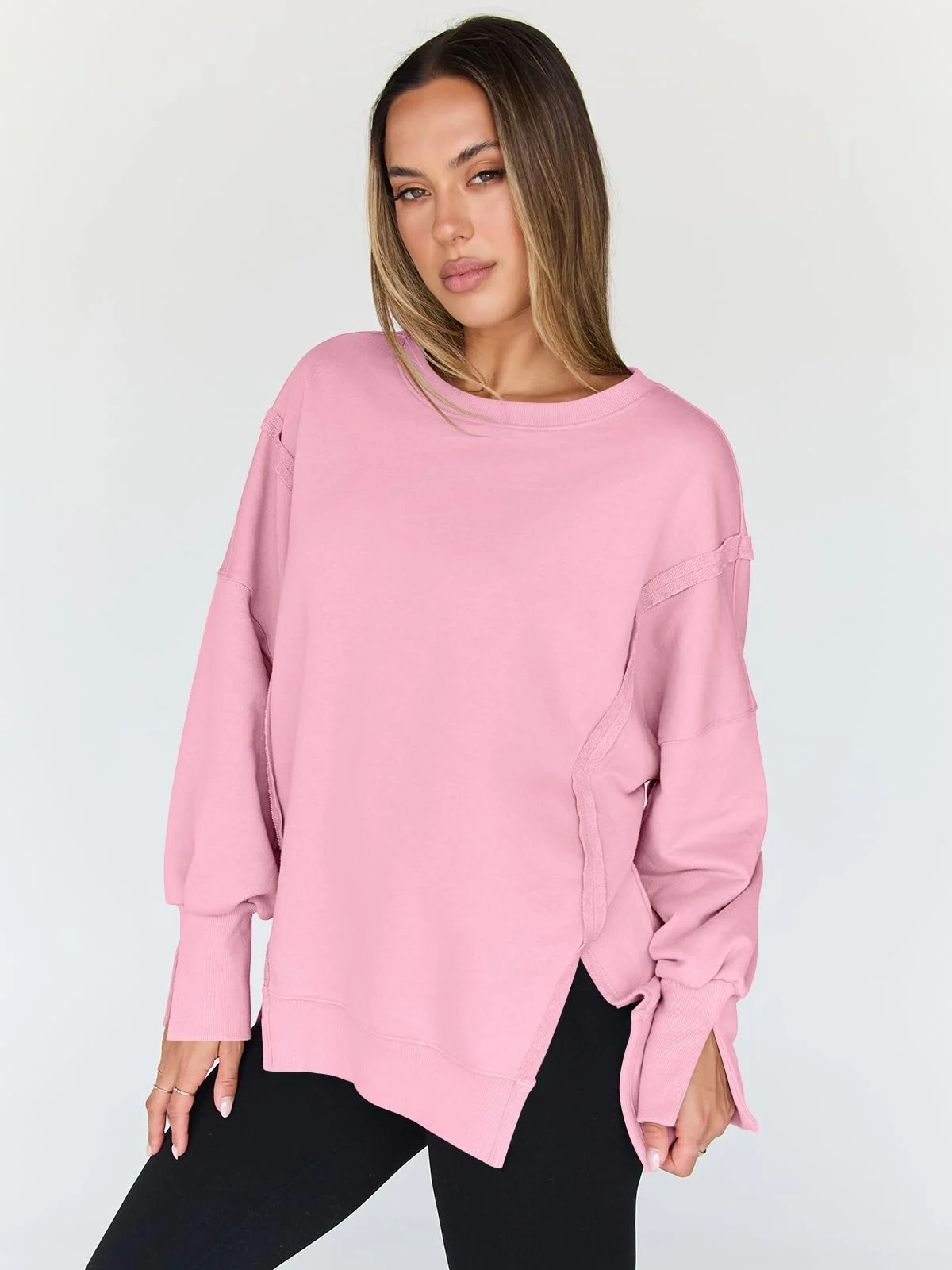 Womens Oversized Sweatshirts Crewneck Shirts Winter Clothes – Pink