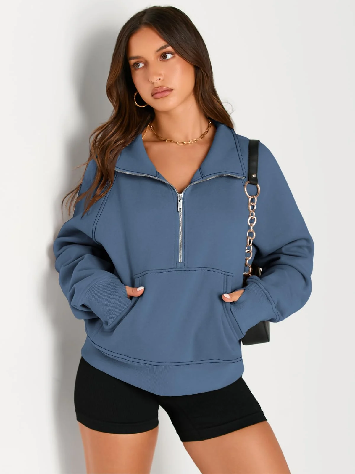 Womens Sweatshirts Half Zip Cropped Pullover Fleece Outfits Clothes – Blue