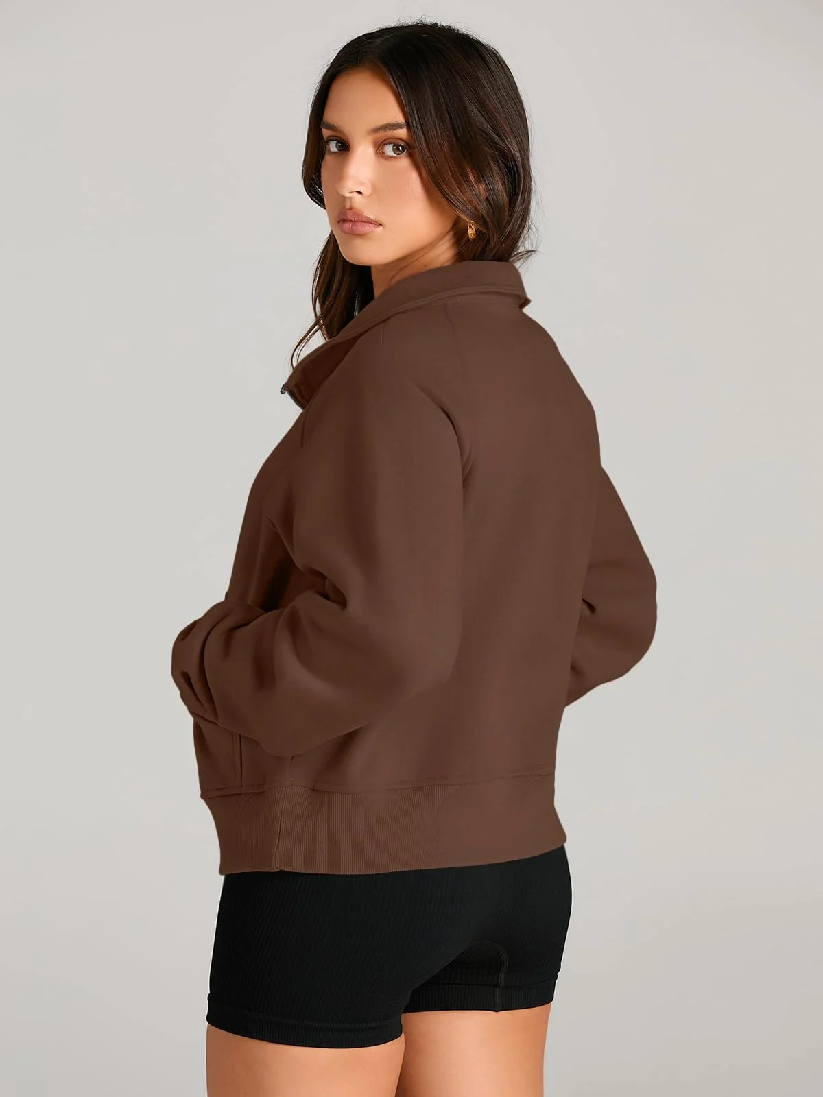 Womens Sweatshirts Half Zip Cropped Pullover Fleece Outfits Clothes – Brown