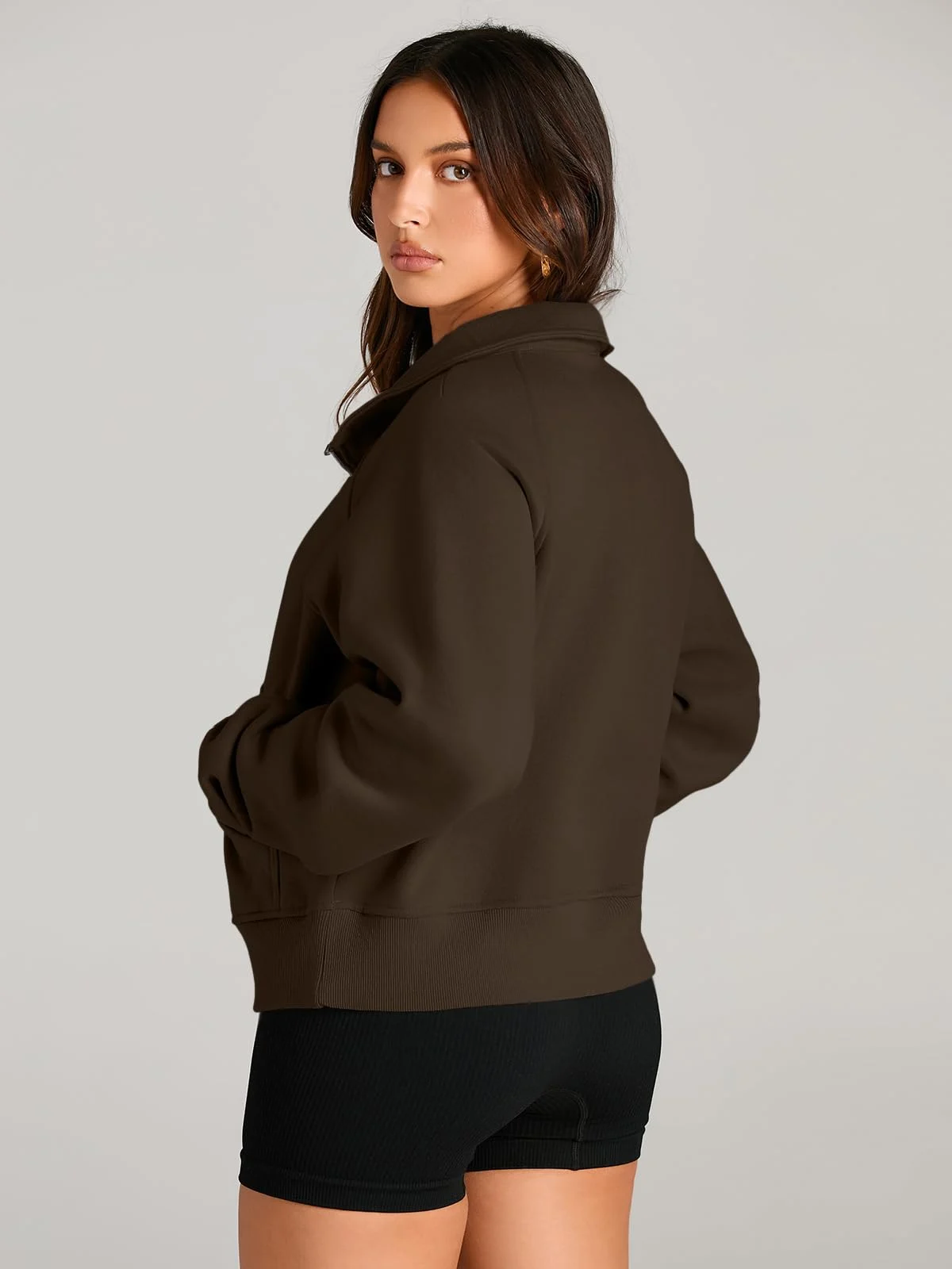 Womens Sweatshirts Half Zip Cropped Pullover Fleece Outfits Clothes – Coffee