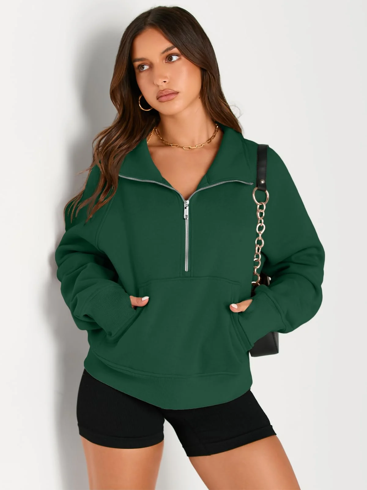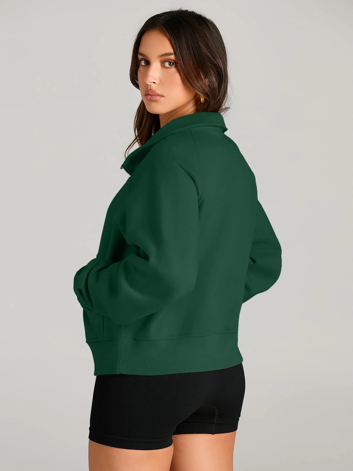 Womens Sweatshirts Half Zip Cropped Pullover Fleece Outfits Clothes – Dark Green