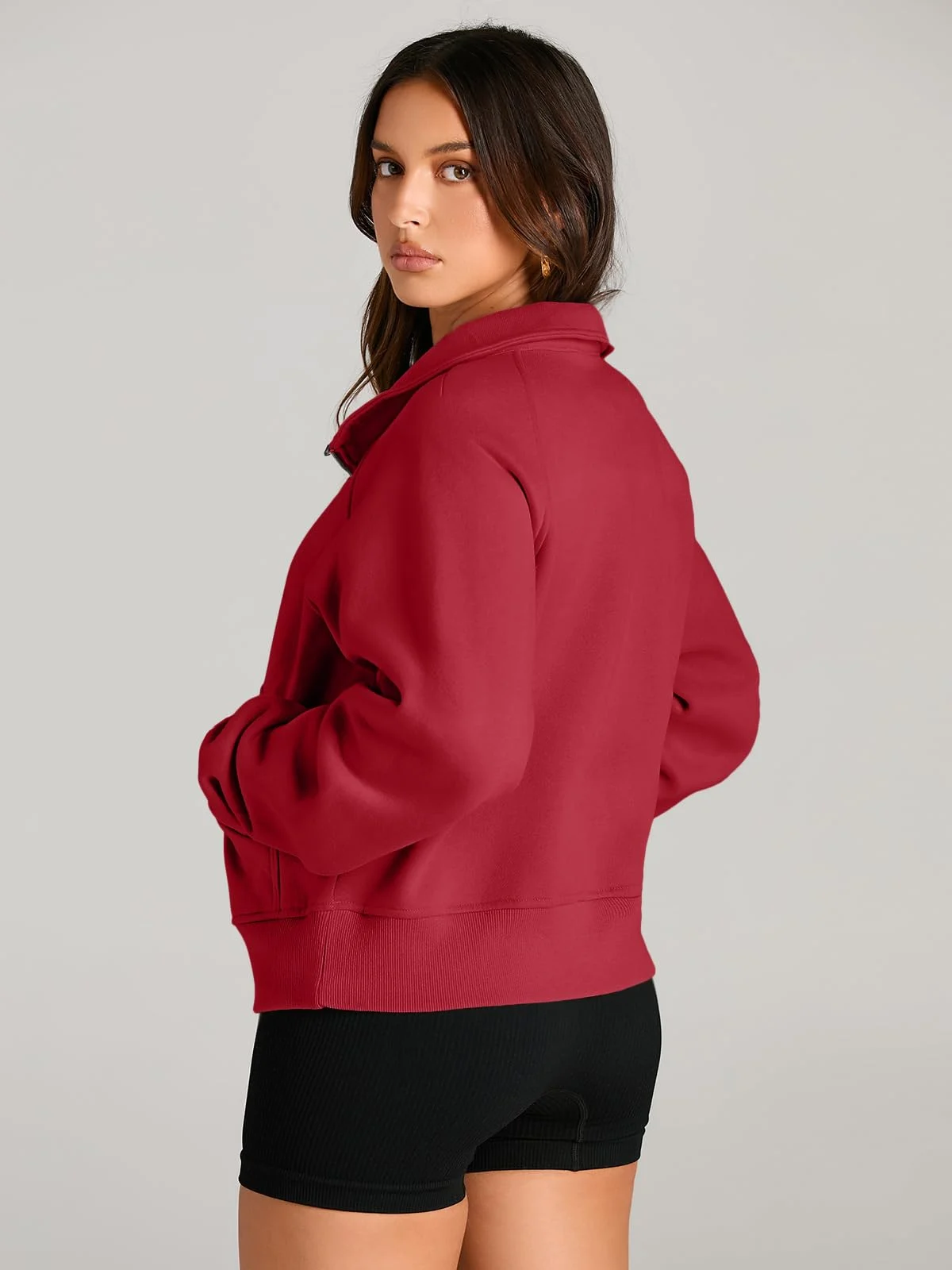 Womens Sweatshirts Half Zip Cropped Pullover Fleece Outfits Clothes – Fiery Red