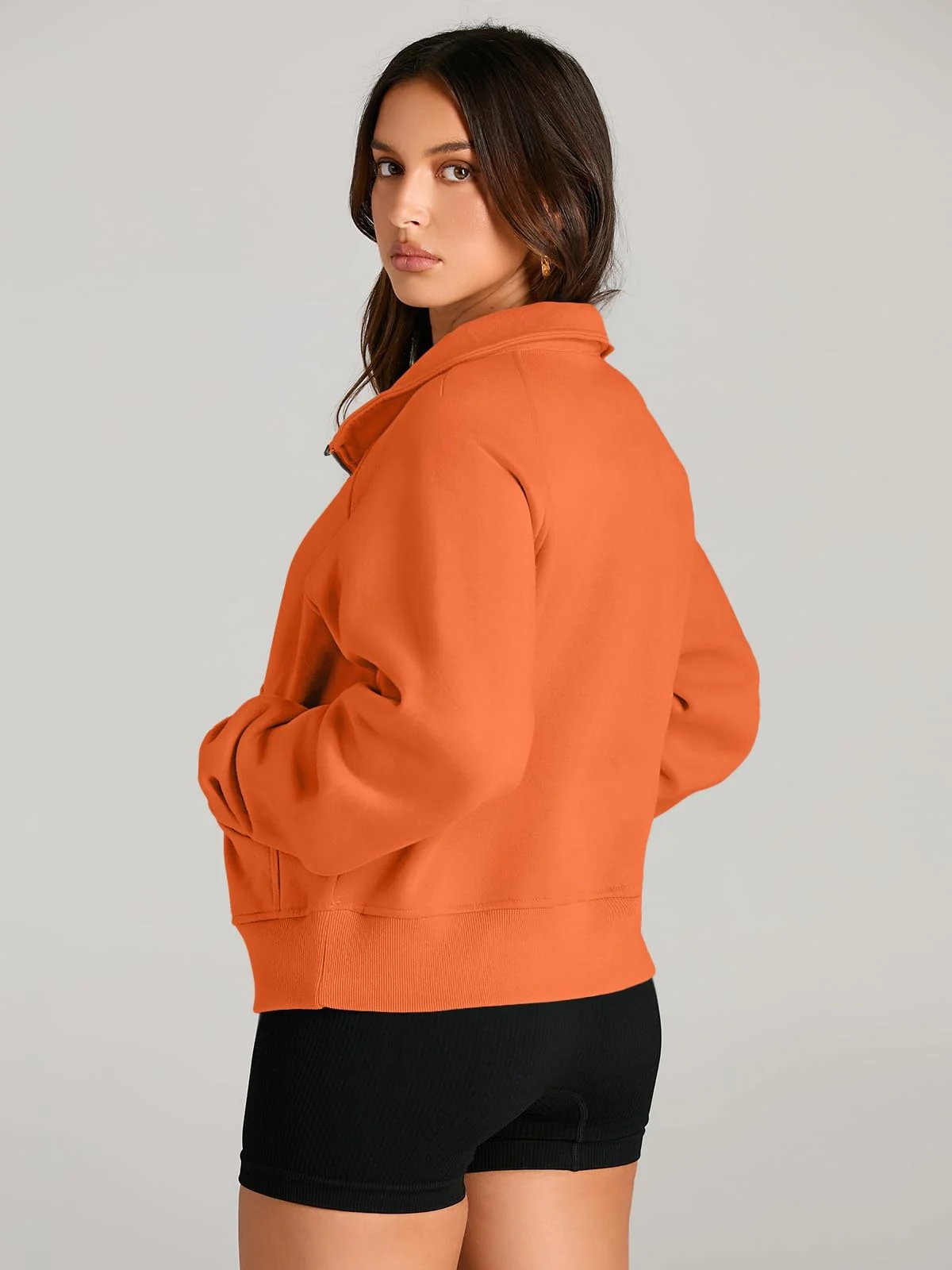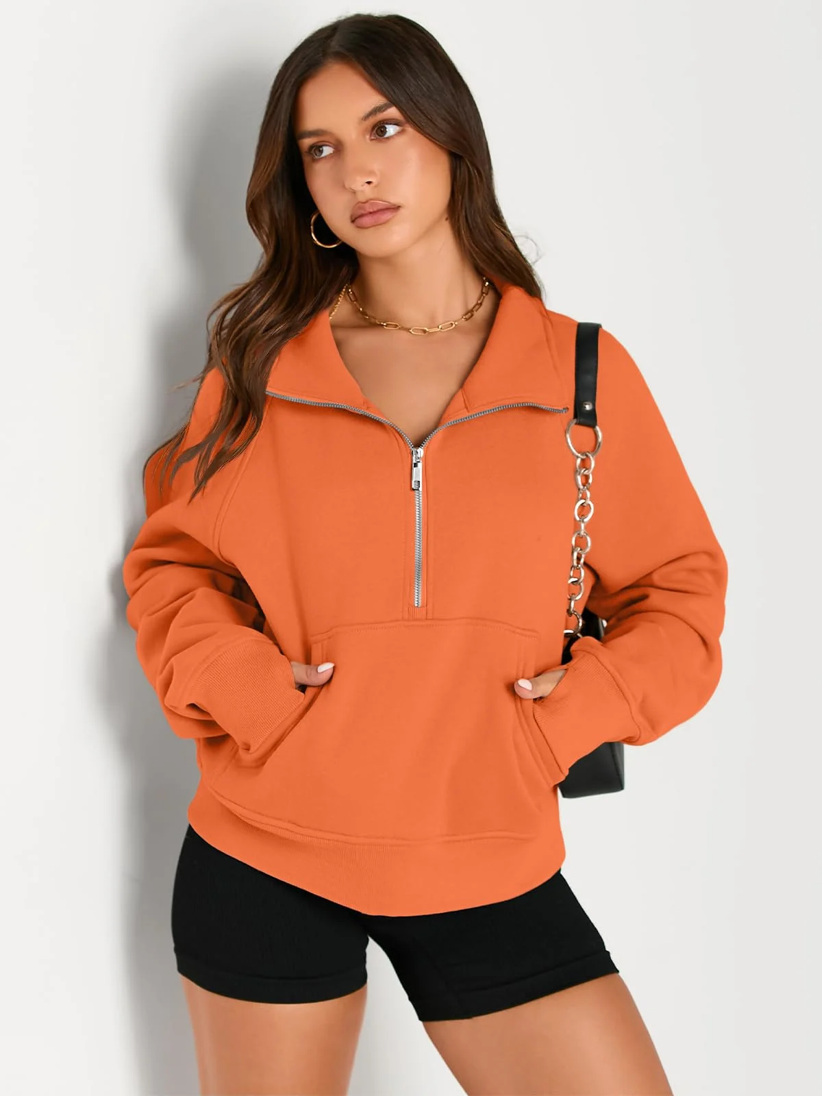 Womens Sweatshirts Half Zip Cropped Pullover Fleece Outfits Clothes – Orange