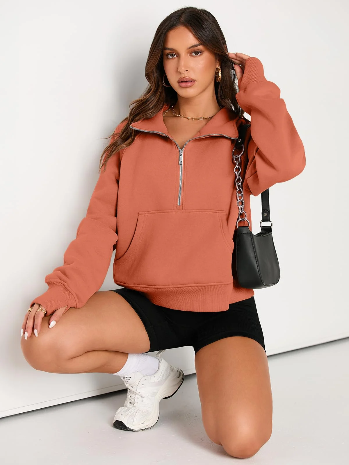 Womens Sweatshirts Half Zip Cropped Pullover Fleece Outfits Clothes – Orangepink